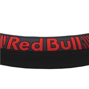 パンチングレザー素材のブラックを基調としたデザインに、Red Bullのレッドアクセントが映えるスタイリッシュなステアリングカバー。